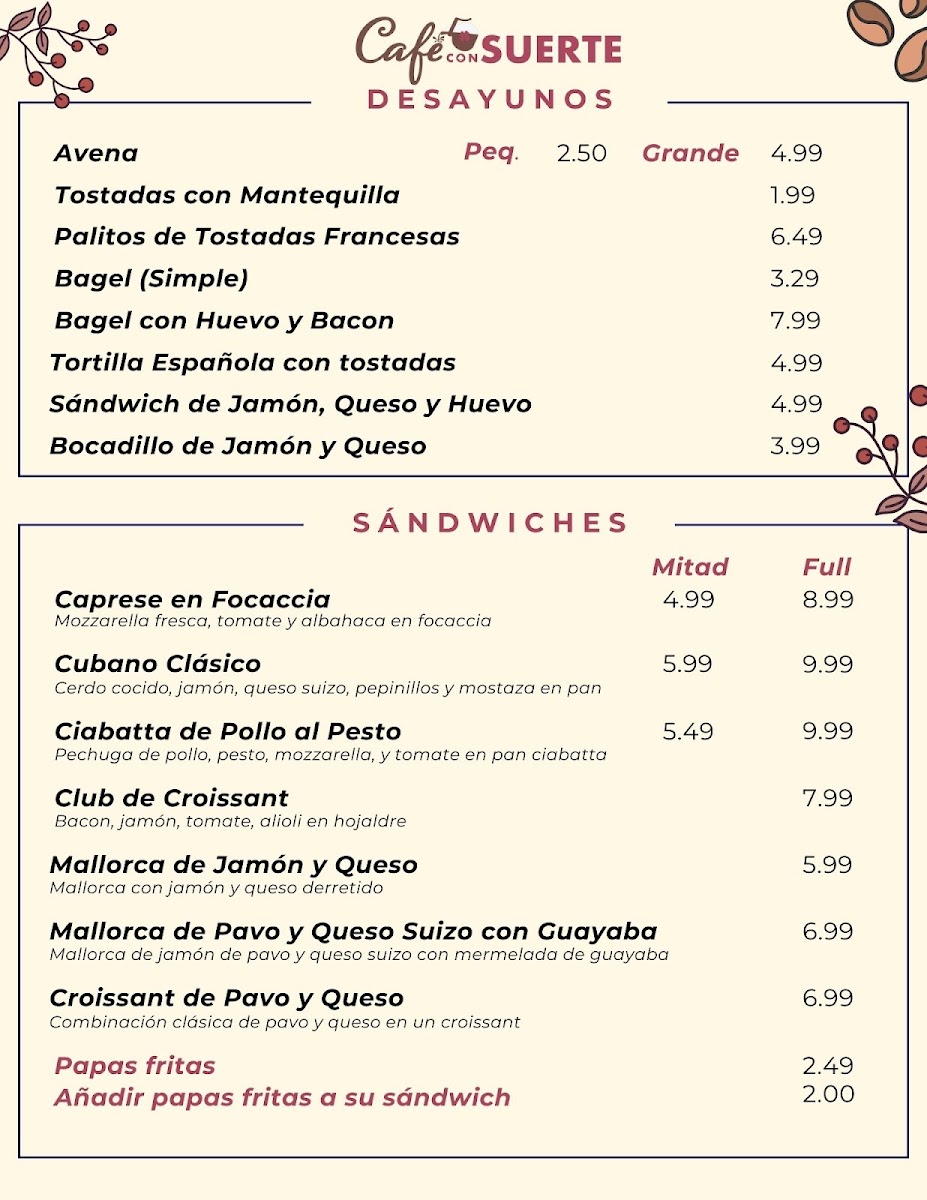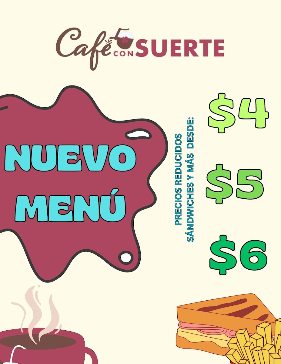 Located in the vibrant Las Vegas Mall of Vega Baja, Cafe Con Suerte offers a delightful culinary escape with its diverse menu. Whether you crave a hearty sandwich, breakfast fare, or a comforting coffee, this café has something for everyone.